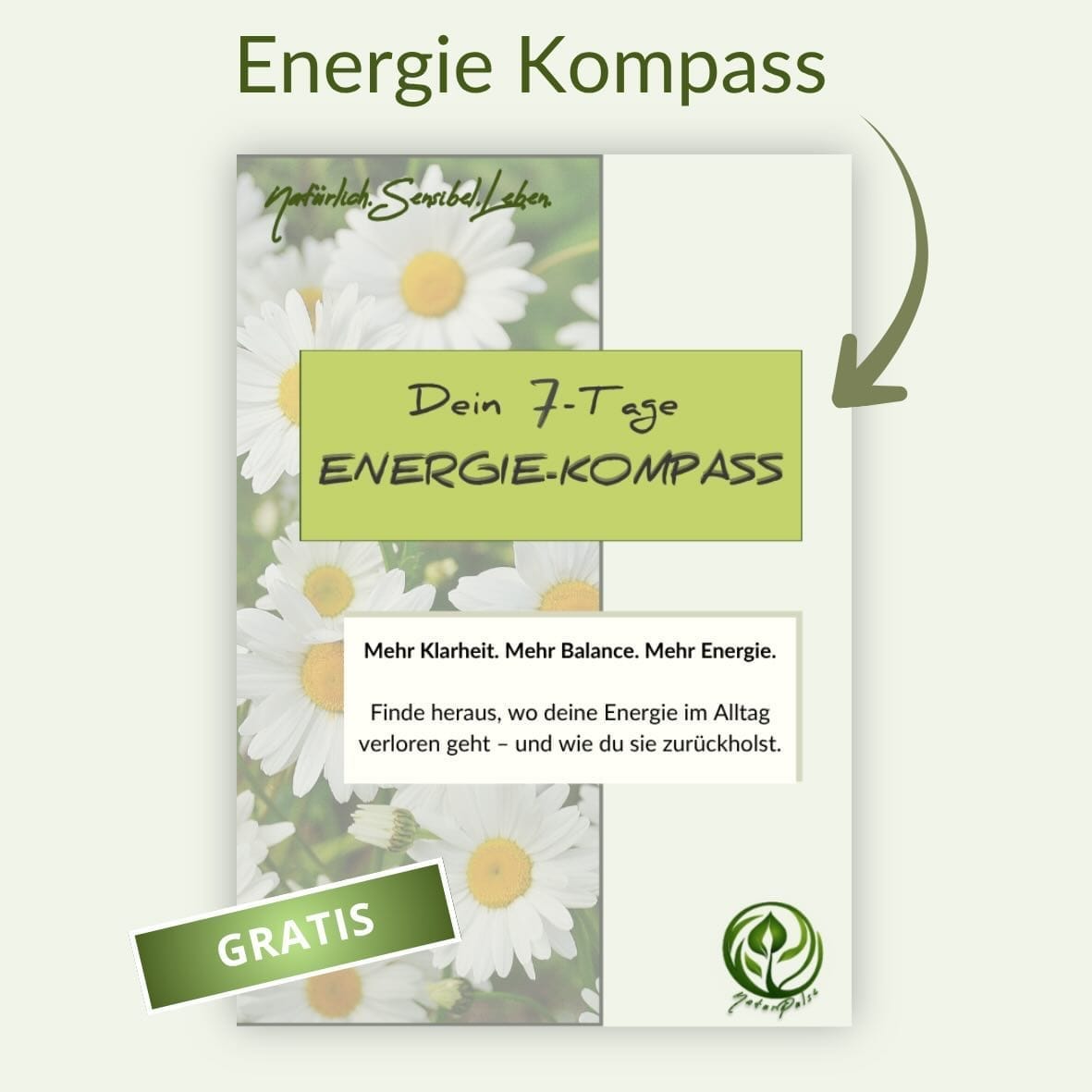 Der Energie-Kompass hilft dir, deine Energiequellen und Energieräuber zu erkennen. Mit dem 7-Tage-Balance-Plan bekommst du einfache Impulse für mehr Leichtigkeit und innere Balance.